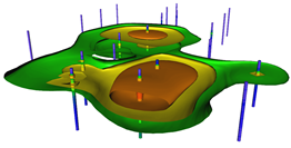 Modelos de dados com clareza impressionante em todas as dimensões. Com as extensas ferramentas de modelação 3D do Voxler, é fácil visualizar dados de múltiplos componentes para modelos geológicos e geofísicos, plumas de contaminação, nuvem de pontos LiDAR, modelos de poços ou modelos de depósitos de minério.